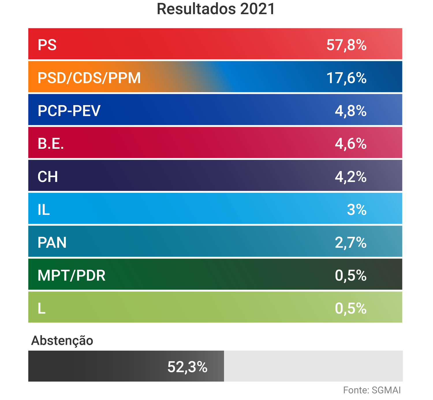 Por fim, são também apresentados os resultados das anteriores eleições autárquicas, realizadas em 26 de setembro de 2021.