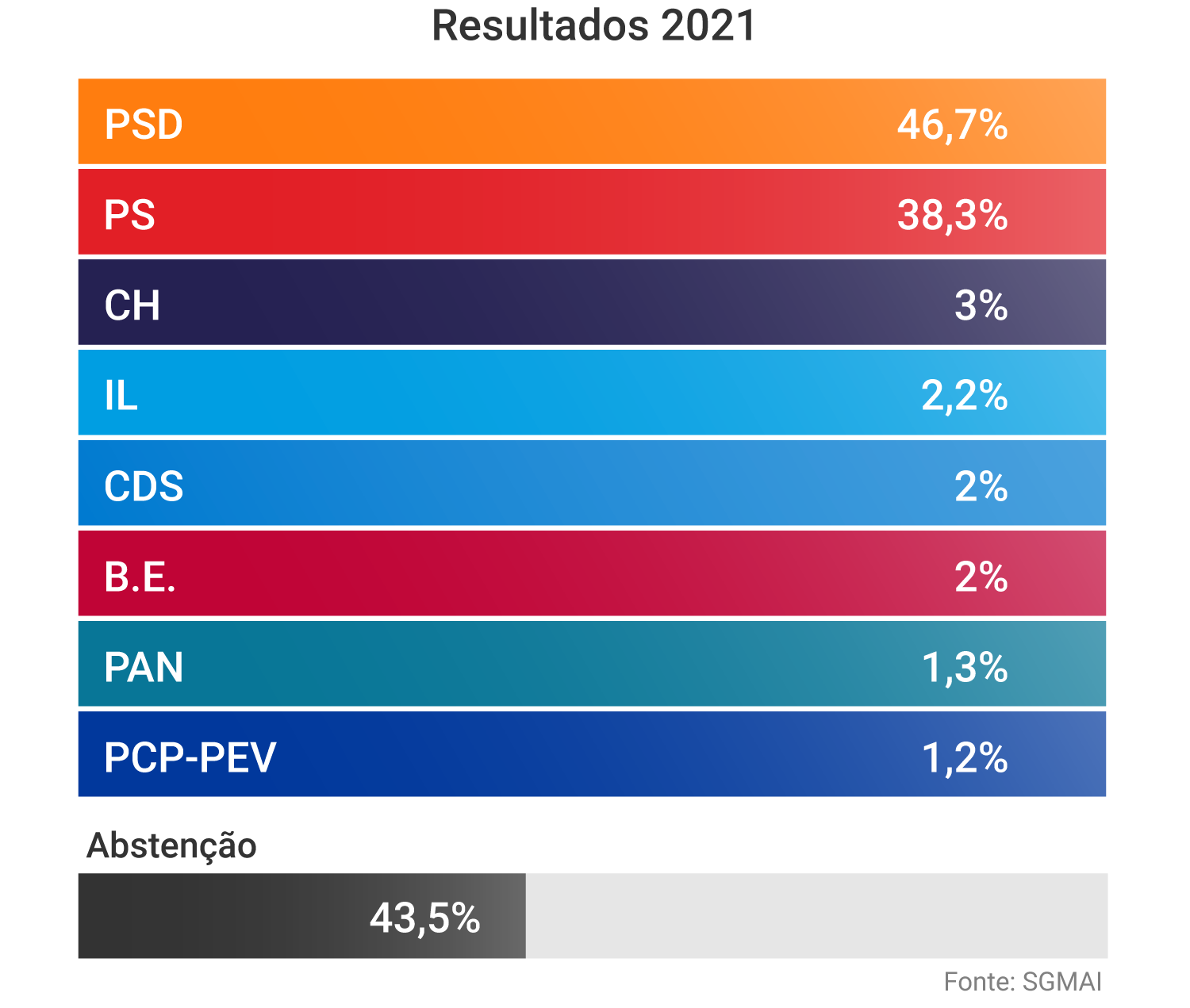 Por fim, são também apresentados os resultados das anteriores eleições autárquicas, realizadas em 26 de setembro de 2021.