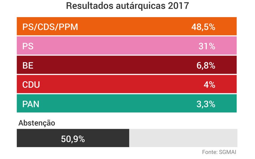 Por fim, lembramos também os resultados de há quatro anos, nas Eleições Autárquicas de 1 de outubro de 2017.