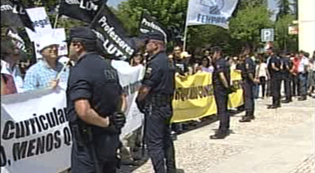 Do lado de lá da barreira formada por militares da Guarda Nacional Republicana, que os impedia de se aproximarem, os manifestantes vaiavam e lançavam palavras de ordem contra o Governo.