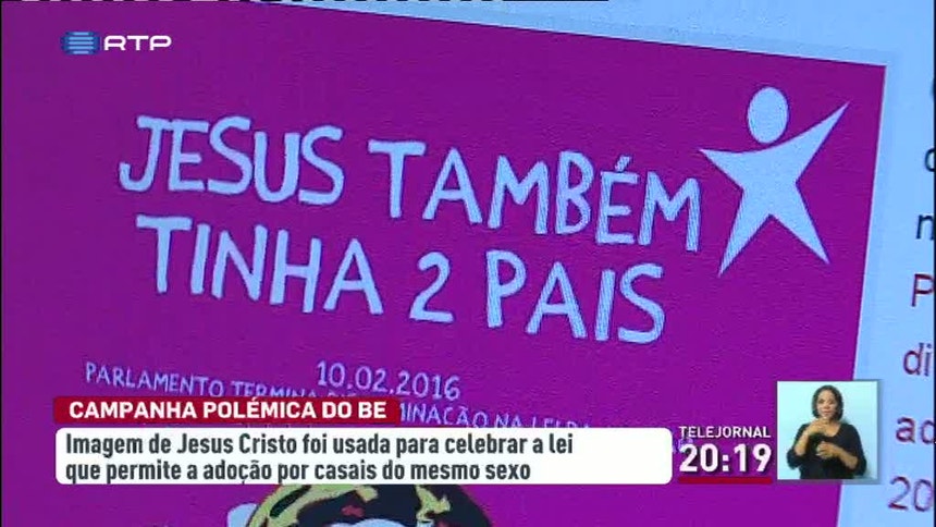 Política Bloco de Esquerda lançou cartaz a dizer que Jesus tem dois pais O Bloco de Esquerda lançou um cartaz a dizer que Jesus tem dois pais. Luis Filipe Fonseca, Filipe Martins, Luís Moreira / VER MAIS O cartaz celebra a aprovação da lei que permite a adoção por casais do mesmo sexo, mas a Igreja não gostou. PUB