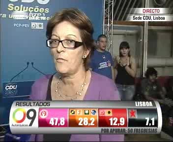À RTP, Fernanda Mateus fez a primeira análise da coligação PCP-PEV aos números das projecções para o escrutínio das eleições autárquicas.