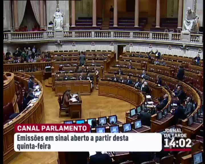 O canal Parlamento estreia-se esta quinta feira em sinal aberto. Esta tarde pode ver em direto a transmissão do plenário sobre o pagamento de metade dos subsídios de férias e de Natal em duodécimos e logo a seguir, em diferido, pode ver o debate quinzenal da sexta-feira anterior. O Canal Parlamento vai ter 12 horas de emissão em sinal aberto com exceção dos fins-de-semana, do mês de agosto e dos tempos de paragem da atividade parlamentar.