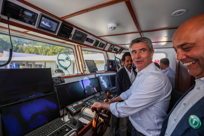 "Pouco a pouco o PS está a reencontrar-se com os portugueses e com as portuguesas", disse José Luís Carneiro, que, durante um breve período, esteve ao leme da embarcação que levou a comitiva socialista e os jornalistas por uma curta viagem ao largo de Sesimbra - depois da visita à lota e da conversa com pescadores e com o candidato Sérgio Faias.