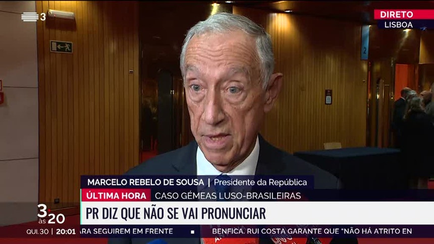Marcelo Rebelo de Sousa anunciou esta quinta-feira que não se irá pronunciar no âmbito da comissão de inquérito ao caso das gémeas luso-brasileiras. O chefe de Estado considerou que não surgiram novos dados que "tivessem a ver com a intervenção" do presidente.