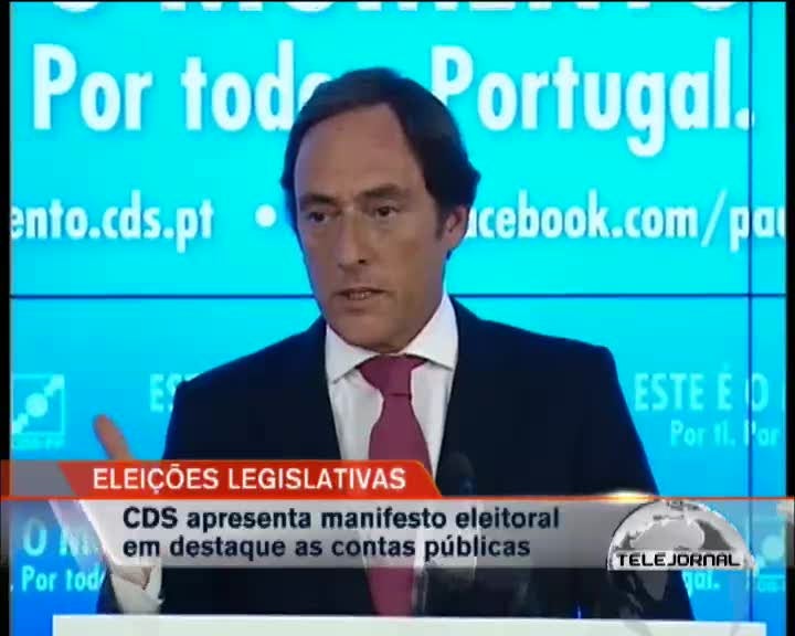São cinco as prioridades que servem de epígrafe ao manifesto que o CDS-PP submete à avaliação dos eleitores portugueses. Os objetivos foram enunciados por Paulo Portas a partir da sede nacional do partido: “Pagar o que devemos e sanear as finanças públicas, pôr a economia a crescer, que é a condição do emprego, evitar a exclusão social e, finalmente, dar prioridade à Justiça e sentir a segurança como uma responsabilidade”.