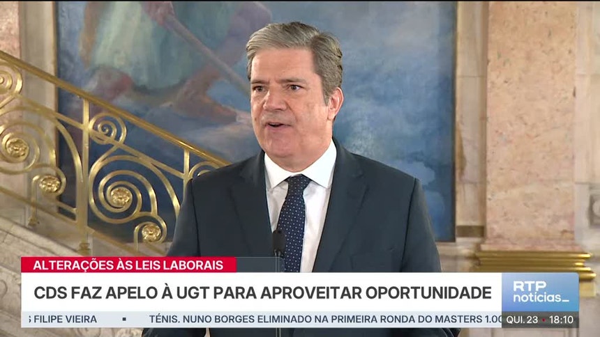 O líder parlamentar do CDS-PP apelou hoje à UGT para que "aproveite última oportunidade" para negociar o pacote laboral na concertação social, mas abriu portas ao diálogo parlamentar com "outros partidos" se não houver acordo.
