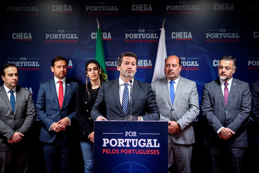 André Ventura também não respondeu a perguntas dos jornalistas, numa sessão em que defendeu a criação do crime de residência ilegal, em Portugal, a revogação da lei da nacionalidade e a fixação de apenas dois escalões de IRS.