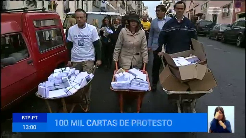 A organização do protesto garante que são cem mil as cartas entregues ao presidente da República e ao primeiro-ministro.