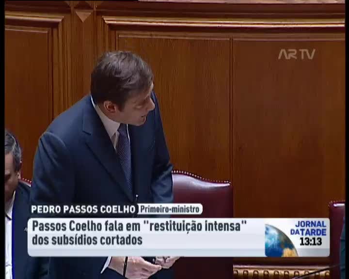 Corte dos subsídios vigorará no período de aplicação do programa de ajustamento da economia e serão depois repostos gradualmente, diz Passos Coelho