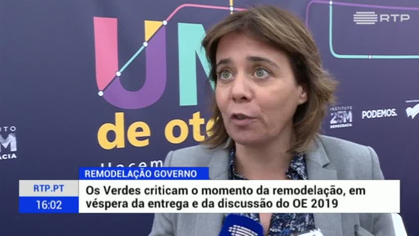 "As vésperas da entrega e discussão do OE não parece ser o momento mais adequado para remodelações governamentais, tendo em conta a necessidade que o parlamento tem de esmiuçar as diferentes estratégias e rubricas e que o fará agora com ministros que não participaram na elaboração desse documento nas respetivas pastas que agora assumem", declararam Os Verdes em comunicado.