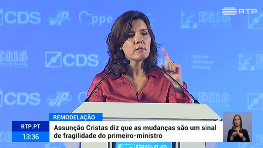 Para a líder do CDS, a remodelação “por arrasto de uma demissão, que vem por arrasto de uma situação insustentável, não é nenhum reforço, não é nenhum sinal de autoridade. É mais um sinal da extraordinária fragilidade do primeiro-ministro”.