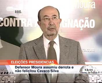 Defensor Moura recusou-se a felicitar Cavaco Silva por uma questão de coerência. O candidato de Viana do Castelo assumiu a derrota por não ter atingido o objectivo de levar Cavaco a uma segunda volta.