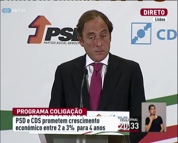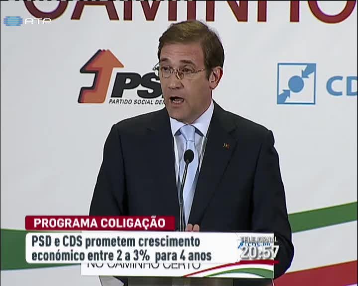 Fazer descer o desemprego “para a média europeia”, um crescimento de 2 a 3%, a “eliminação progressiva da sobretaxa de IRS” e “recuperação gradual do rendimento dos funcionários públicos” são compromissos que constam do documento esta noite apresentado pela maioria para o que será uma nova legislatura em caso de vitória da coligação PSD-CDS nas próximas legislativas.