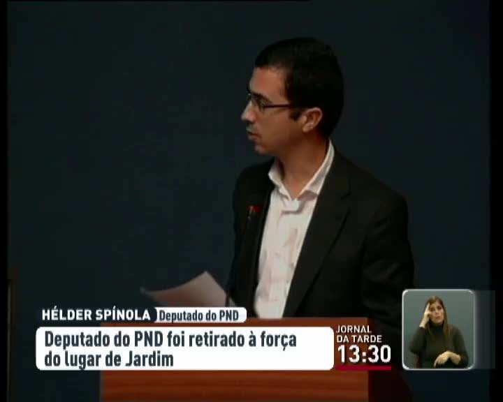 A polémica voltou ao parlamento madeirense. Durante o último dia da discussão do Orçamento Regional para 2014, o deputado do PND, Hélder Spínola, foi retirado à força do lugar destinado ao presidente do governo regional, que se retirou na altura da intervenção do deputado.