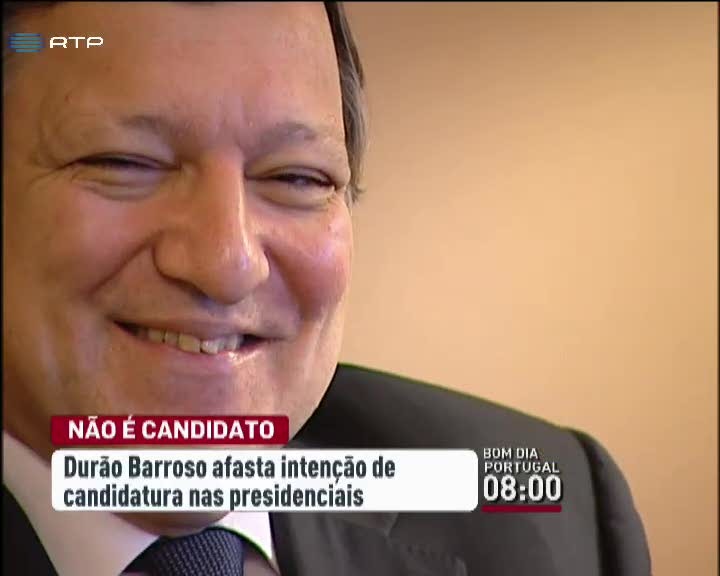 Durão Barroso diz que não tenciona candidatar-se à presidência da República. Numa entrevista ao semanário Expresso/ SIC, o Presidente da Comissão Europeia, que termina o mandato em Outubro, afasta a intenção de concorrer a Belém, nas próximas eleições presidenciais. Apesar de negar essa intenção, Durão Barroso não avança com planos concretos para o futuro, dizendo que precisa de pensar e reflectir. Sobre Portugal, o presidente da Comissão Europeia diz ainda que o próximo Governo que sair das eleições legislativas de 2015 tem de ser um executivo de "consenso alargado" e adianta que um Governo sem maioria parlamentar "não terá quaisquer condições de levar a cabo algumas reformas que ainda vão ter de continuar". Durão Barroso acrescenta que esse consenso alargado deve ser replicado na figura do próximo chefe de Estado, que "deve ser apoiado pelas principais forças políticas".