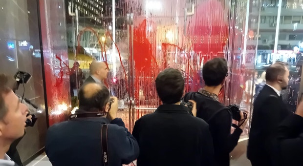 Ativistas do clima atiraram tinta à entrada do hotel escolhido pela Aliança Democrática