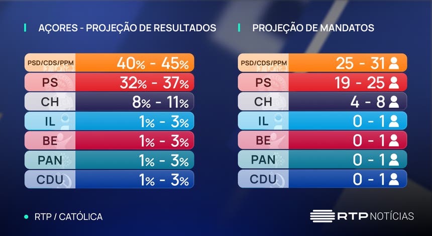 Eleições nos Açores. Projeção da Católica para a RTP dá vitória à coligação de direita
