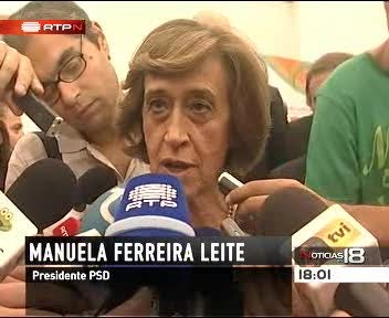 A líder do PSD, instada pelos jornalistas a comentar a suspensão do "Jornal nacional" conduzido por Manuela Moura Guedes, afirmou que houve "um grave atentado à liberdade na comunicação social". Manuela Ferreira Leite sustenta que não estão em causa os resultados eleitorais mas "um clima de falta de liberdade total".