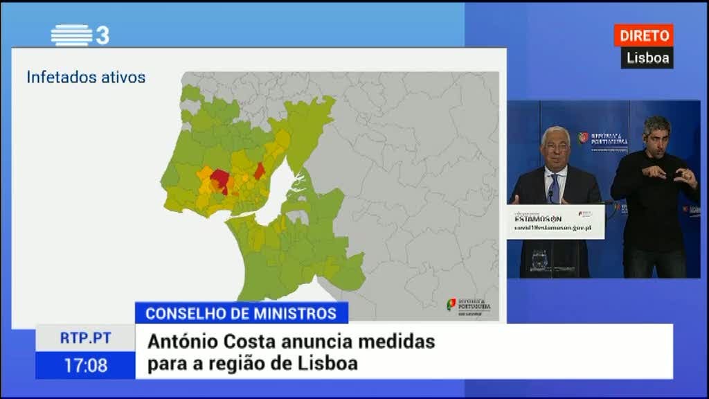 O primeiro-ministro anunciou esta quinta-feira a manutenção do estado de calamidade em 19 freguesias de cinco diferentes concelhos da região de Lisboa.