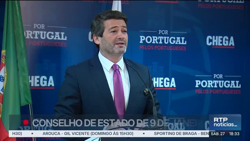 O líder do Chega defendeu ainda que, caso a reunião do Conselho de Estado "venha a existir" nessa data, então que seja feito pelos conselheiros de Estado um balanço do mandato de 10 anos de Marcelo Rebelo de Sousa em Belém, para analisar "o lugar a que conduziu Portugal na cena internacional".