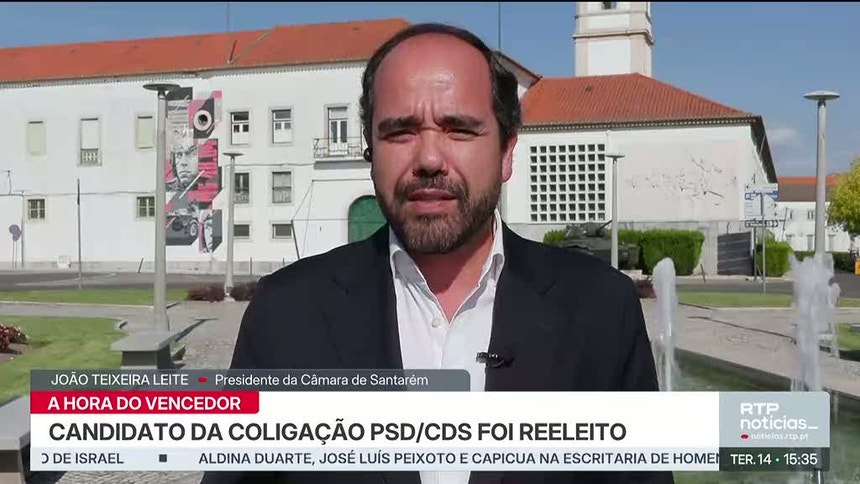O candidato da coligação PSD/CDS foi reeleito em Santarém. João Teixeira Leite realçou a "votação expressiva" que a candidatura conseguiu arrecadar e mostrou-se disponível para dialogar com o PS e o Chega, com quem já tem reuniões agendadas para esta terça-feira e quinta-feira.