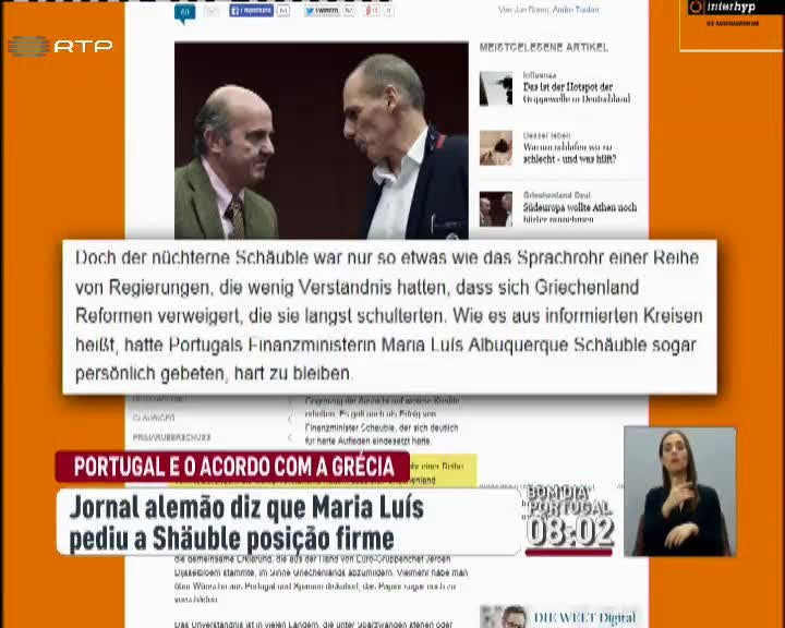 Apesar desta garantia da Ministra das Finanças, de que não interferiu no acordo e que não sugeriu uma única alteração, a edição online do jornal alemão Die Welt escreve que Maria Luís Albuquerque pediu pessoalmente ao homólogo alemão, Schäuble, para se manter firme em relação aos gregos e em relação às negociações que estavam em curso.