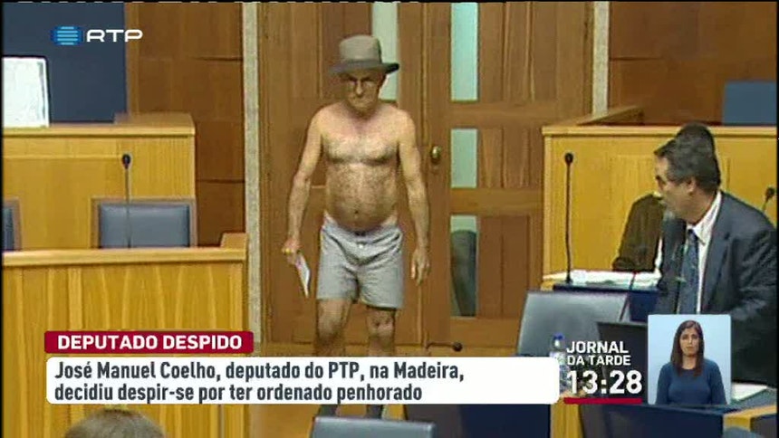 José Manuel Coelho, deputado do PTP, despiu-se em pleno parlamento da Madeira. Foi a forma de protesto que escolheu para criticar a justiça portuguesa devido a um processo de penhora. Uma ação que levou à interrupção dos trabalhos na assembleia regional.
