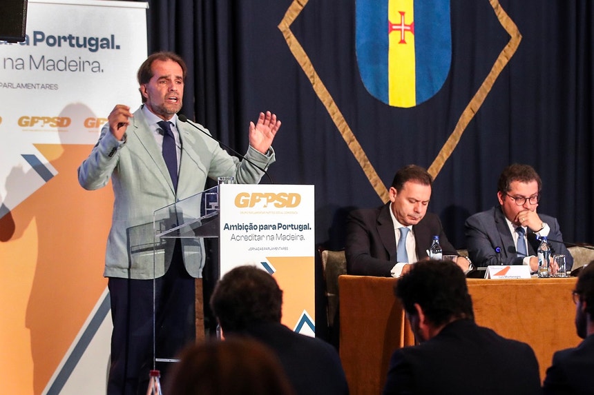 O presidente do Governo Regional da Madeira em declarações à jornalista da Antena 1 Inês Ameixa, à margem das Jornadas Parlamentares do PSD.