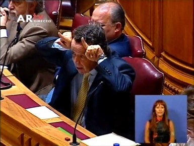 O ministro Manuel Pinho teve um gesto que marcou o ano parlamentar, quando durante o debate do "Estado da Nação", na bancada do Governo, colocou os dedos indicadores na testa a simular chifres. O gesto dirigia-se ao líder da bancada parlamentar do PCP, Bernardino Soares, durante uma intervenção do Bloco de Esquerda sobre as minas de Aljustrel. O ministro considera que foi um "excesso".