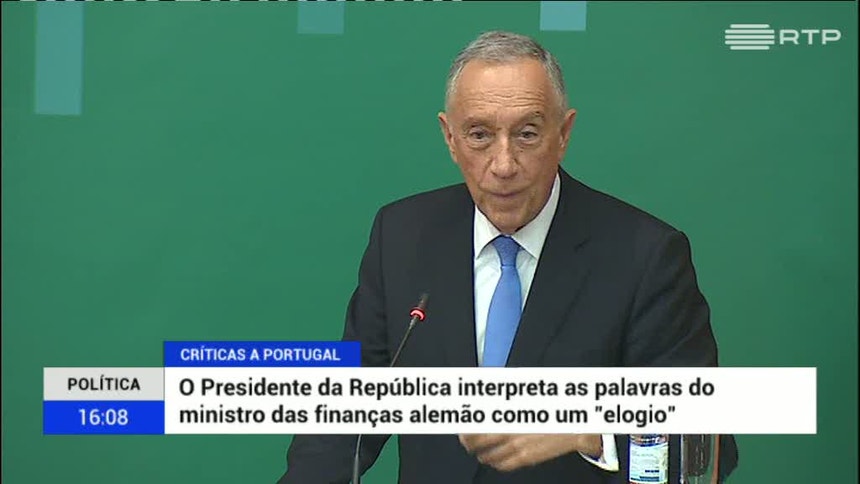 O Presidente da República assinalou esta quinta-feira que há quem recorra a uma “forma especial de elogio” e que prefira alertar para os perigos de um “resultado menos positivo no futuro”. O comentário de Marcelo surge um dia depois de Wolfgang Schäuble ter voltado a duvidar da capacidade de Portugal evitar um novo resgate financeiro.