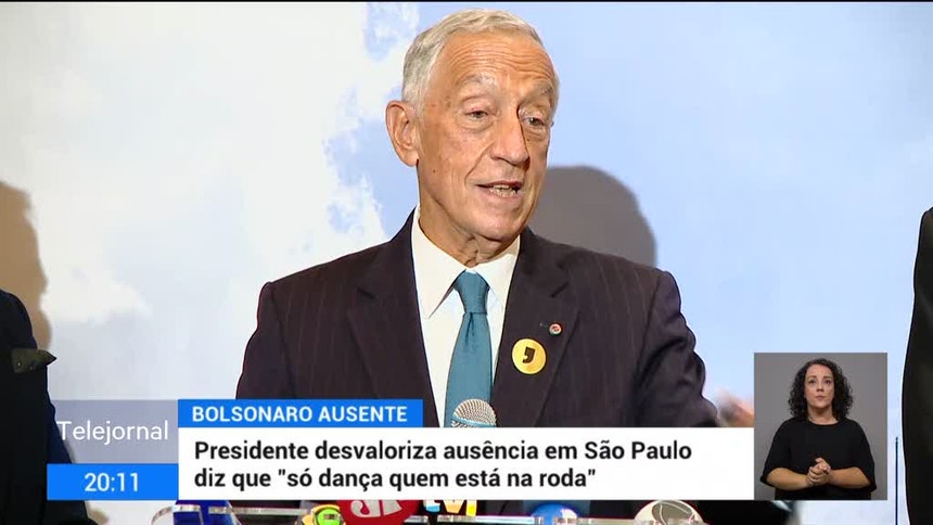 Marcelo Rebelo de Sousa diz que "só dança quem está na roda" - comentário do Presidente sobre a ausência de Bolsonaro na inauguração do Museu da Língua Portuguesa, em São Paulo. Marcelo Rebelo de Sousa está de visita oficial ao Brasil, onde já reuniu com vários ex-presidentes brasileiros.