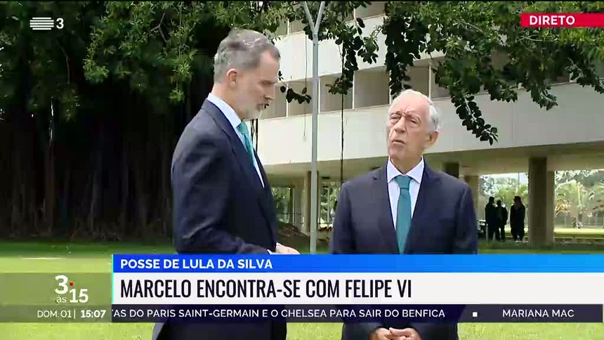 O Presidente da República, Marcelo Rebelo de Sousa, e Felipe VI de Espanha tiveram hoje um encontro, com almoço, de cerca de duas horas, em Brasília, antes da posse de Lula da Silva como Presidente do Brasil.