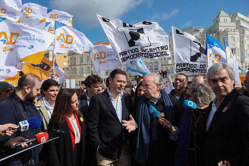 Luís Montenegro acusa o PS de afunilar a visão do país e de se considerar auto-suficiente. Na campanha da AD esteve Santana Lopes, ex-líder que já não é militante do PSD.