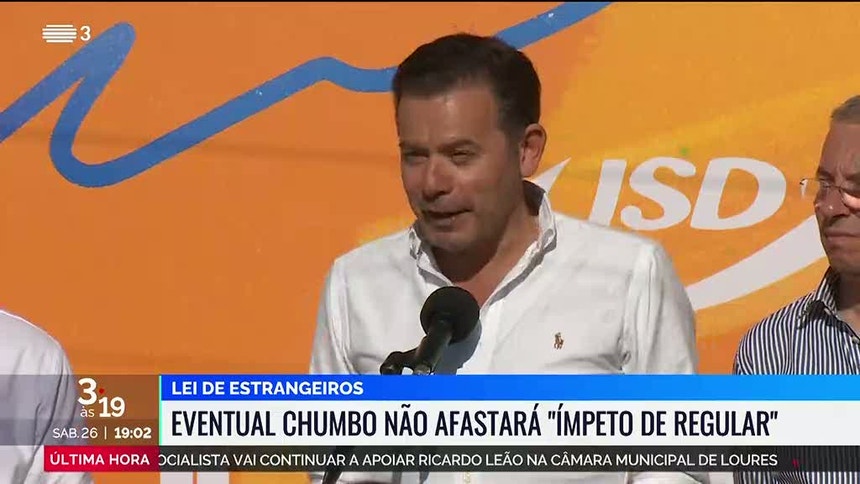 Luís Montenegro diz que se o Tribunal Constitucional chumbar as alterações propostas pelo Governo à Lei de Estrangeiros, isso não vai pôr em causa o ímpeto do Executivo para regular a imigração. Declarações do presidente do PSD, esta tarde, no aniversário da JSD, em Ovar.