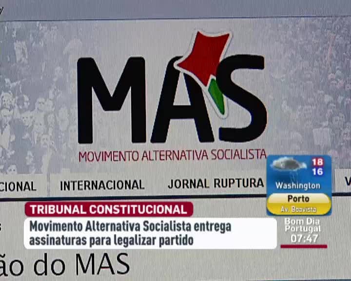 Um novo partido entrega hoje as assinaturas necessárias para a sua legalização. O Movimento Alternativa Socialista nasceu de uma dissidência do Bloco de Esquerda. O MAS conseguiu em poucos meses mais de 8 mil assinaturas.