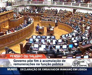 O governo decidiu proibir a acumulação de salários com pensões. A partir de Janeiro, deputados, médicos, magistrados e até o Presidente da República vão ter de optar: ou recebem a pensão ou o salário. Termina assim a regra do terço para os aposentados que continuam na função pública e que lhes permitia acumular um terço do salário com a totalidade da reforma ou vice-versa. O governo justifica a medida como uma forma de moralizar a despesa pública.