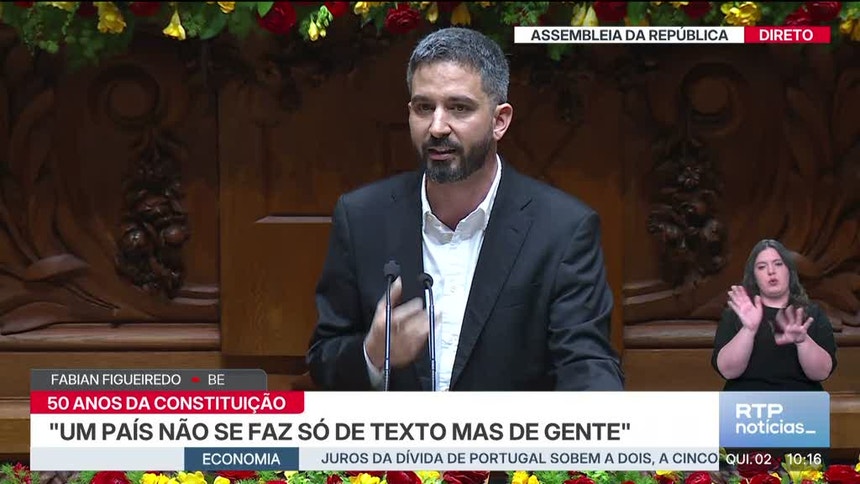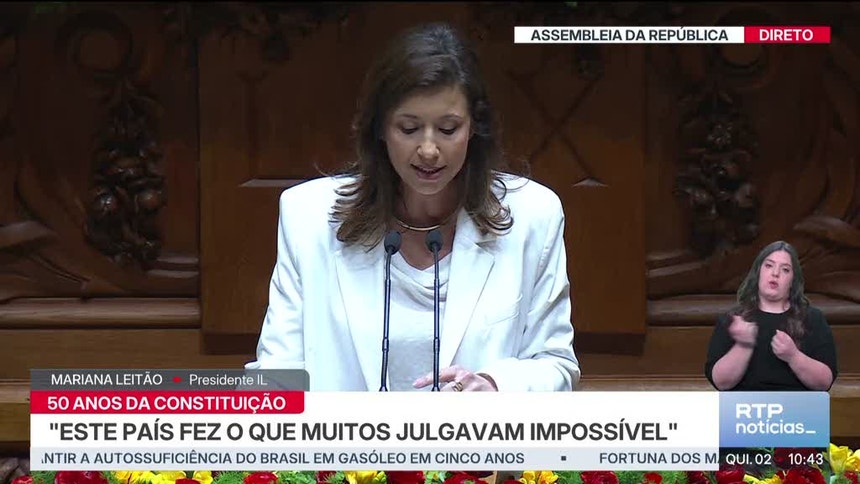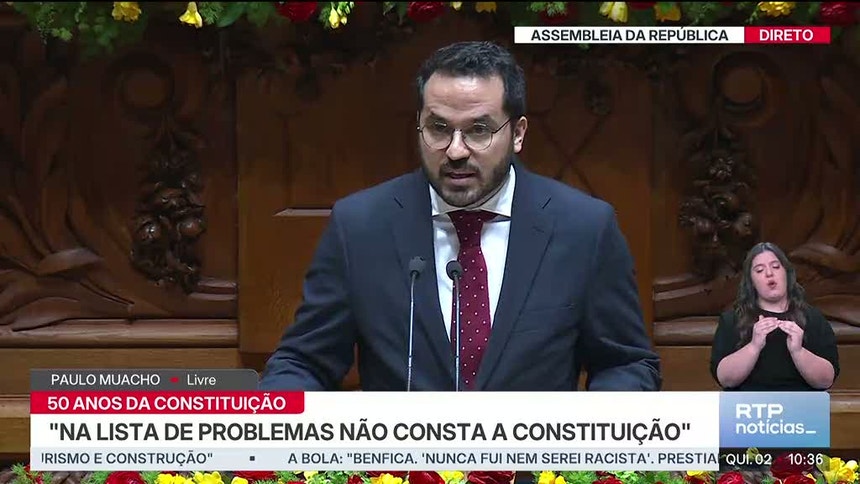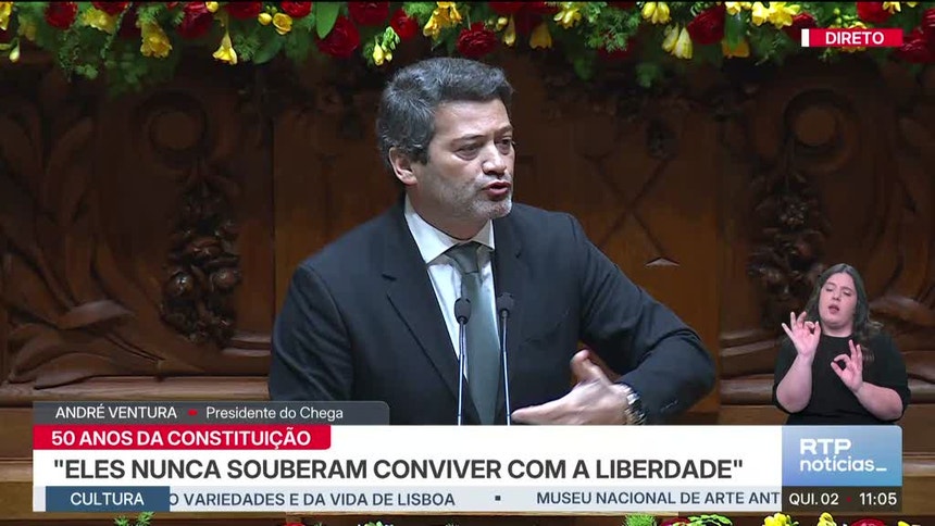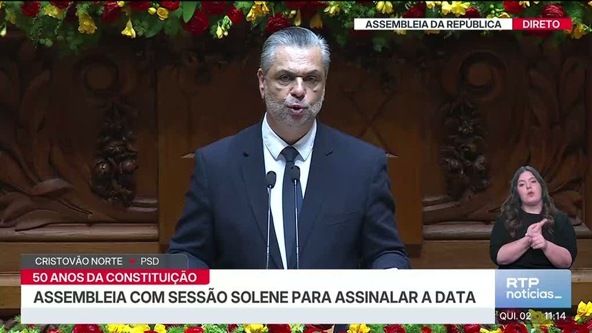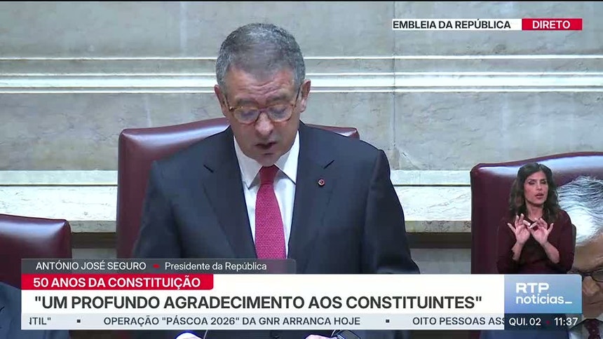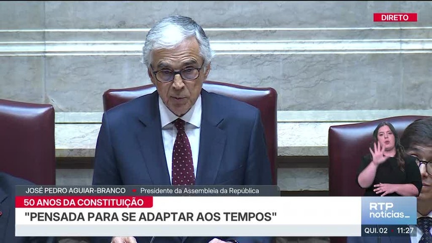 O Parlamento assinalou esta quinta-feira os 50 anos da Constituição da República com uma sessão solene. O presidente da República enalteceu um "património que não pode ser perdido", enquanto Aguiar-Branco lembrou que o texto "não é intocável" e revê-lo "não é um drama ou uma traição". O momento mais tenso ocorreu durante o discurso de André Ventura. Alguns deputados constituintes presentes na sessão solene, entre os quais Helena Roseta e Jerónimo de Sousa, abandonaram as galerias do Parlamento.