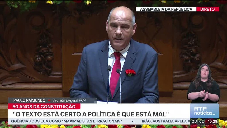 Paulo Raimundo, secretário-geral do PCP, defendeu o texto da Constituição, afirmando que “consagrou valores e conquistas bem vivos na consciência coletiva do povo”.