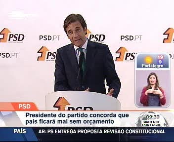 Pedro Passos Coelho admite que Portugal pode ficar numa situação "muito difícil" se não houver Orçamento do Estado para 2011. Em entrevista a um matutino alemão, o líder do PSD não revela o sentido de voto do partido no próximo dia 29, mas adianta que está preocupado com a situação. Na mesma entrevista, o presidente dos sociais-democratas sublinha que é grande a confusão no Governo socialista e que as instituições financeiras perderam a confiança no trabalho do Executivo. Passos Coelho revela ainda que o partido está disposto a aprovar uma emenda na Constituição para que seja possível ir a votos antes de Abril de 2011.