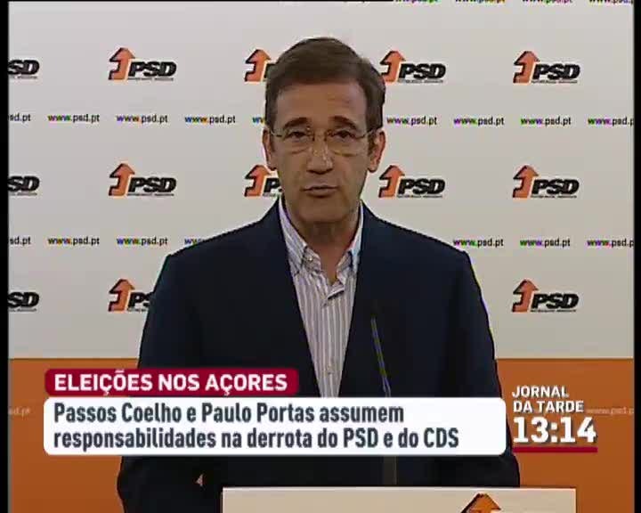 Pedro Passos Coelho e Paulo Portas assumiram a responsabilidade pelos maus resultados de PSD e CDS-PP nos Açores. No entanto, o primeiro-ministro garante que estes resultados não alteram o rumo definido pelo Governo. Quanto a António José Seguro, acredita que o PS nacional também vai vencer. A restante esquerda fala de uma lição para os partidos da maioria.