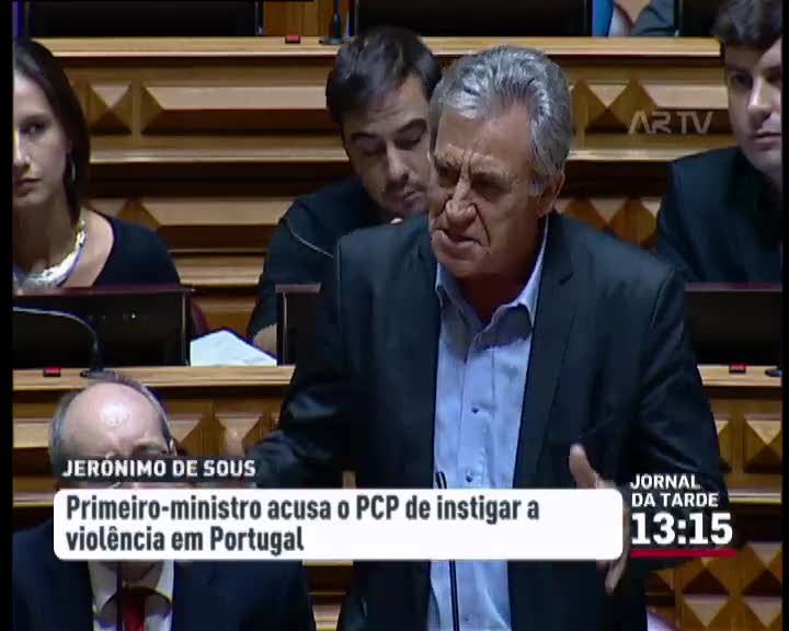 Debaixo de sonoros protestos da bancada comunista, a que se juntaram deputados do PS, Passos reforçaria o contra-ataque a Jerónimo: “As expressões que aqui emprega, traduzindo-se na mais do que sugestão, na responsabilização por atos de roubar, como acusa o Governo de fazer, torna o PCP cúmplice, para não dizer instigador, de atitudes de maior violência em Portugal”.