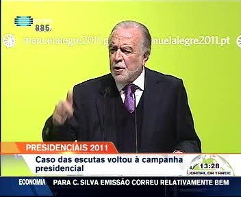 Ao falar do significado do escrutínio de 23 de janeiro, Alegre dramatizou com a ideia de que está em causa “uma mudança de democracia e uma mudança de regime”. “Temos de decidir se queremos um Presidente que esteja perto daqueles que mais sofrem, ou um Presidente que esteja mais perto dos que mais têm e dos que menos sofrem e que são aqueles, quase todos, que estão nas suas comissões de honra e política”, lançou o candidato, de dedo apontado a Cavaco Silva. Adiante, procurou acentuar o que o aparta do adversário: “Candidato-me por uma República entendida como serviço público, como primado pelo interesse geral, contra o clientelismo, contra o amiguismo, contra a promiscuidade entre negócios e política”.