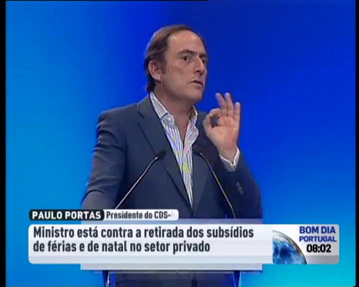 "Não será comigo que Portugal vai diabolizar a função pública", garantiu Paulo Portas, considerando, no entanto: "Temos de saber e entender que, se o problema de Portugal é défice do Estado, não é justo pretender que o setor privado tem a mesma responsabilidade de ajudar".