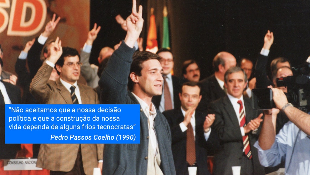 Vinda do atual líder da Juventude Social Democrata, a crítica à linguagem passista mostra a história a repetir-se. Em 1990, Passos Coelho afirmava que não aceitaria que “a construção da nossa vida dependa de alguns frios tecnocratas”.