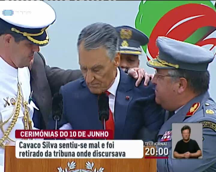 Cavaco Silva teve uma indisposição e teve de ser retirado do palco onde falava. O chefe de Estado foi assistido e regressou meia hora depois para retomar o discurso do dia de Portugal.