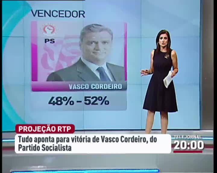 Vasco Cordeiro venceu as eleições nos Açores de acordo com uma projecção da Universidade Católica. O PS Açores ganha por uma margem clara e tudo indica que vai renovar a maioria absoluta conquistada por Carlos César. O PS Açores tem entre 48% e 52%, o PSD soma apenas 29% a 33% dos votos, o CDS tem entre 6 a 9%, a A CDU entre 2% a 4%, o mesmo intervalo que que é atribuído ao Bloco de Esquerda. O PPM tem entre 1 a 2%. A abstenção situa-se entre os 50 e os 55%