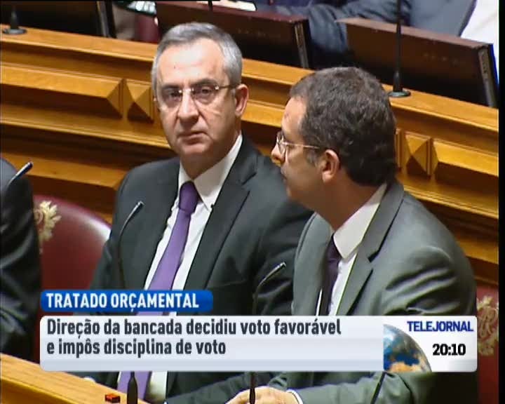 O PS impôs disciplina de voto na votação do Tratado Orçamental, mas os deputados da JS não a vão cumprir. O líder da Juventude Socialista, Pedro Alves, anunciou que ele e outro deputado da JS só ainda não decidiram se vão votar contra ou abster-se. A direção da bancada decidiu o voto favorável. Alguns dos deputados socialistas que tinham anunciado que pretendiam votar contra dizem agora que vão respeitar a decisão da direção da bancada. É o caso de João Galamba, que afirmou que inicialmente estava prevista a liberdade de voto e contava poder assim votar contra, mas perante a mudança de posição decidiu cumprir a disciplina de voto.