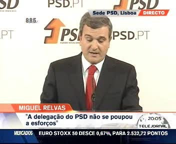 Ao início da noite, a partir da São Caetano à Lapa, Miguel Relvas começou por manifestar o “profundo apreço” da direcção de Passos Coelho “pela forma como a delegação chefiada pelo professor Eduardo Catroga actuou ao longo dessas conversações e pela competência, espírito construtivo e preocupação com a defesa do interesse nacional de que soube dar resposta”.