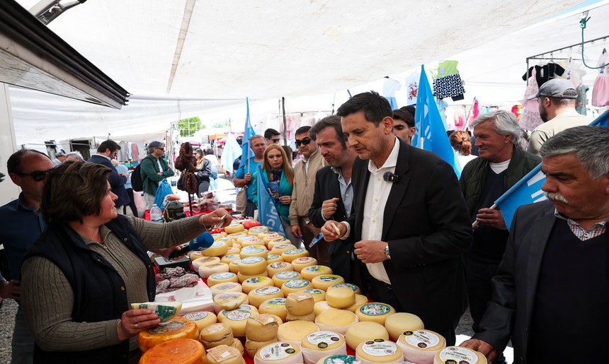 Apesar do conselho, o único produto que Rui Rocha levou da feira foi um queijo, de uma comerciante que anda de feira em feira há 30 anos e que considerou que o negócio está particularmente mau atualmente, uma queixa que o líder da IL ouviu de praticamente todos os feirantes com quem se cruzou.